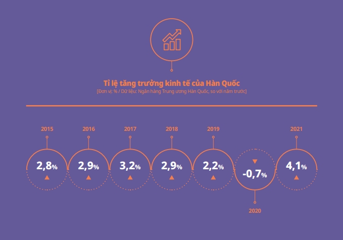 Kim ngạch xuất khẩu của Hàn Quốc đã tăng từ 32,82 triệu đô la vào năm 1960 lên 10 tỷ đô la vào năm 1977 và tiếp tục tăng mạnh lên 64,45 tỷ đô la vào năm 2021. Vào thời điểm thành lập chính phủ năm 1953, thu nhập bình quân đầu người chỉ là 67 đô la, thế nhưng đến năm 2021, con số này đã tăng lên nhanh chóng tới 35.373 đô la. Trong quá trình theo đuổi tăng trưởng chiều sâu dù thiếu vốn và nguồn lực, Hàn Quốc đã tạo dựng được cơ cấu kinh tế định hướng xuất khẩu tập trung vào các tập đoàn lớn. Nói cách khác, Hàn Quốc đã hình thành nhóm các tập đoàn lớn, cơ cấu kinh tế phát triển nhạy cảm với kinh tế bên ngoài và phụ thuộc nhiều vào xuất, nhập khẩu.