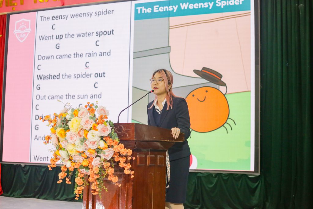 Phát biểu khai mạc, cô Hứa thị Hồng Dung – Hiệu trưởng Trường Tiểu học Cổ Đô đã có những chia sẻ tâm huyết về việc triển khai mô hình ESL tại 3 trường tiểu học được lựa chọn thí điểm, đồng thời gửi lời cảm ơn Trường Đại học Ngoại ngữ đã tham gia triển khai dự án này.